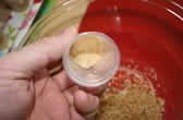Each caterpillar is in an individual container with a soya flour based food mix.