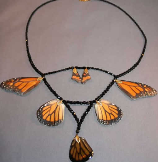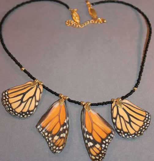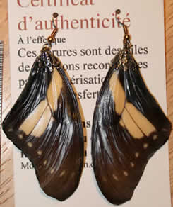 Ce procédé unique vous est expliqué en photos sur la page intitulée MÉTHODE DE CONFECTION. Naturellement, fabriquer des bijoux à partir d'ailes de papillons n'est pas une mince affaire et Monsieur Papillon les vend à Chambly.