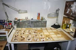 du papillon transfèrent dans la résine, en placant les empreintes dos à dos les écailles transfèrent de l'intérieur vers l'extérieur et ainsi l'aile de droite devient l'aile de