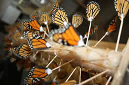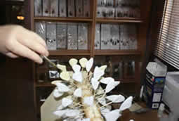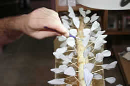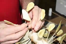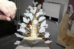 trempe l'extrémité dans la résine pour les placer un à un sur chaque aile.