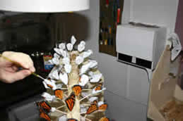collées aux cure-dents, sur la tige de styromousse et j'enduis le bord de