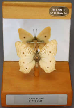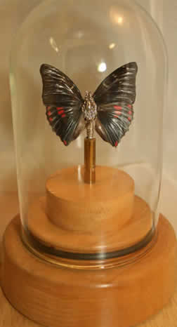 Les mini-sculptures des corps de papillons en argent ou en alliage sont des créations du modéliste