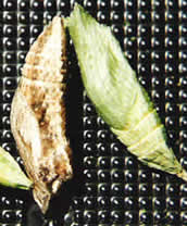 La chrysalide, ou pupe, c'est l'enveloppe dans laquelle la chenille se transforme juste avant de devenir un papillon.