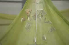 Here are about 50 pupae in an emergence box, they are about all the same age and will all come out of their chrysalis around the same time.