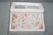 After the butterflies have emerged, the box is stained with red meconium that each insect has evacuated after coming out of the chrysalis (pupa).