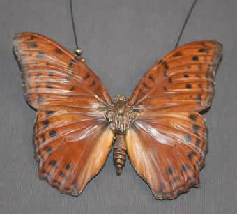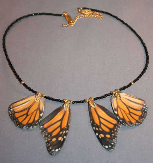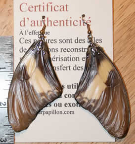 Ce procédé unique vous est expliqué en photos sur la page intitulée MÉTHODE DE CONFECTION. Naturellement, fabriquer des bijoux à partir d'ailes de papillons n'est pas une mince affaire et Monsieur Papillon les vend à Chambly.