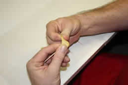 On doit faire attention de ne pas coller le tout sur la surface de travail.