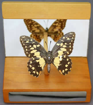 Les mini-sculptures des corps de papillons en argent ou en alliage sont des créations du modéliste