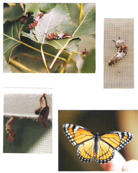 Pour élever des vicerois j'ai introduit dans ma volière une femelle. Elle a pondu sur le faux-tremble(peuplier). Sa chenille ressemble beaucoup à la chenille de l'amiral blanc qui pond aussi sur le peuplier.