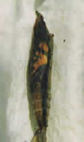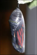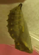 La chrysalide, ou pupe, c'est l'enveloppe dans laquelle la chenille se transforme juste avant de devenir un papillon.